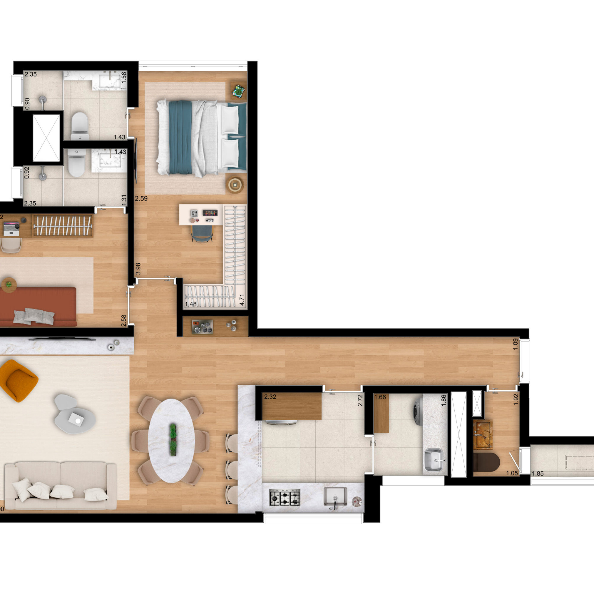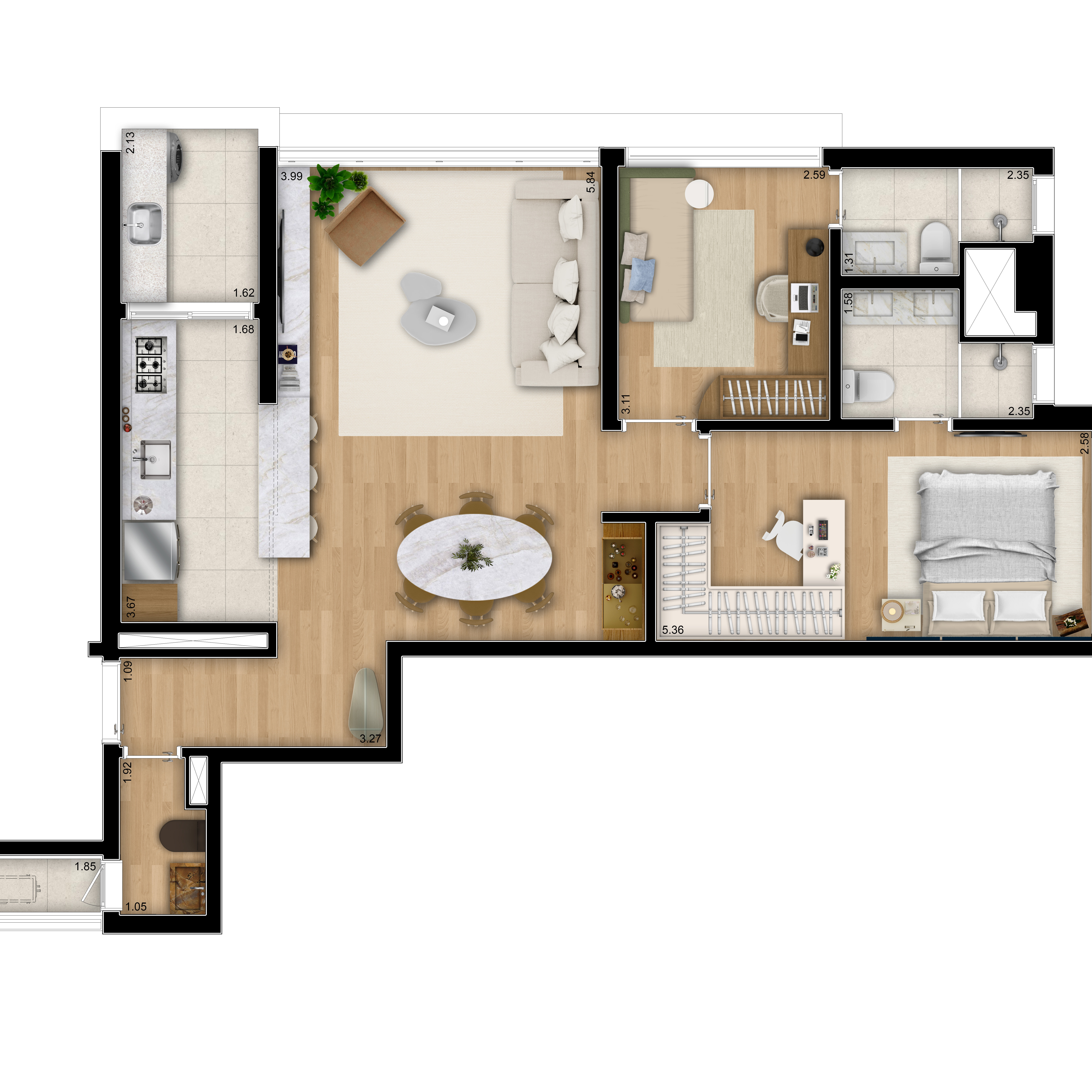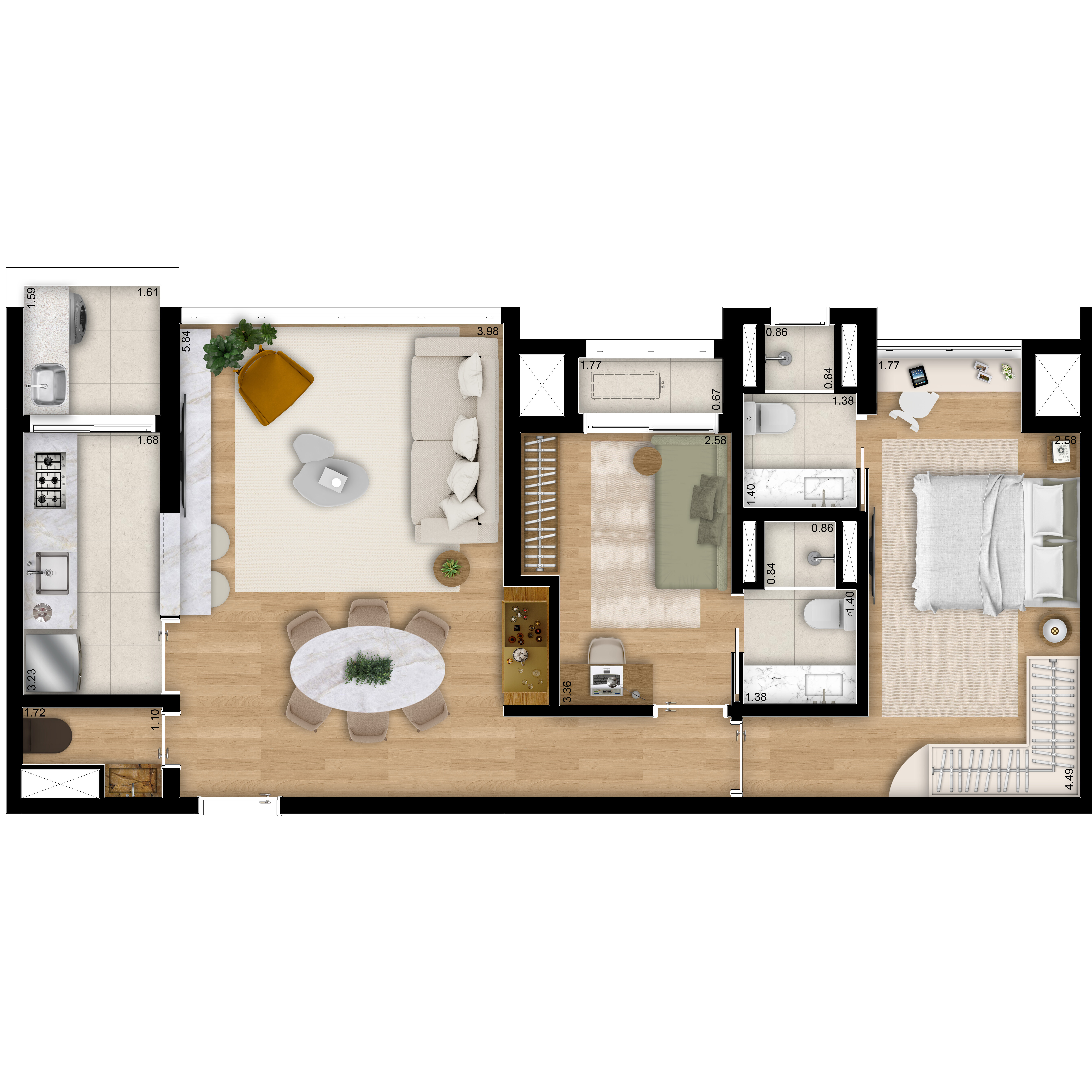 84*m² - 2 suítes - Pé direito duplo
